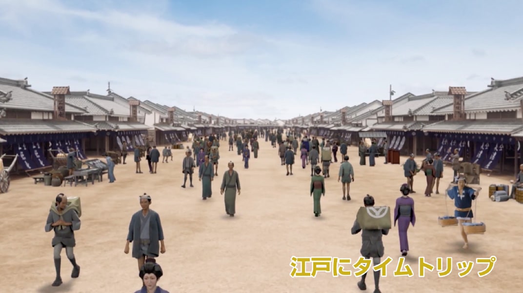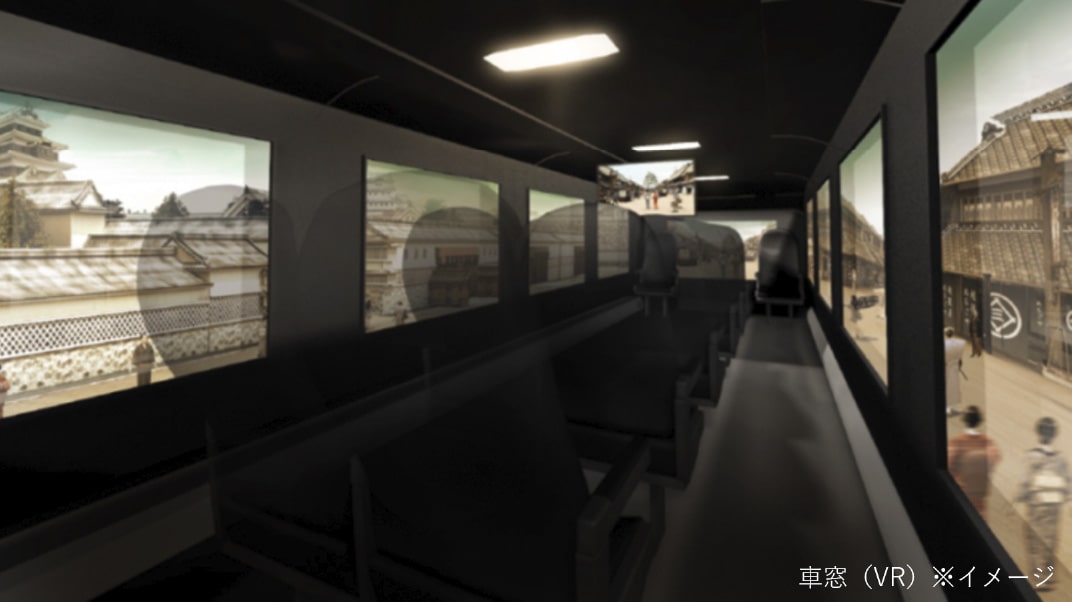 従来のVR体験ではVRゴーグル等を装着し、独りで楽しむものが多いですが、このバスでは、シートに座っているだけで非日常空間を楽しむことができます。車窓に映像が映し出されると、見慣れた景色が一変。陸海空、令和から江戸時代へと時空も移動?!